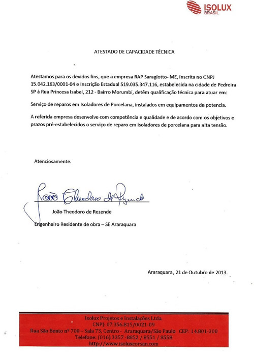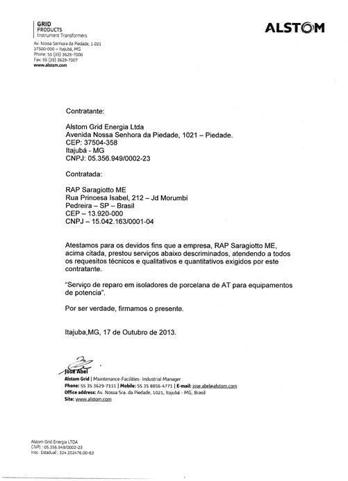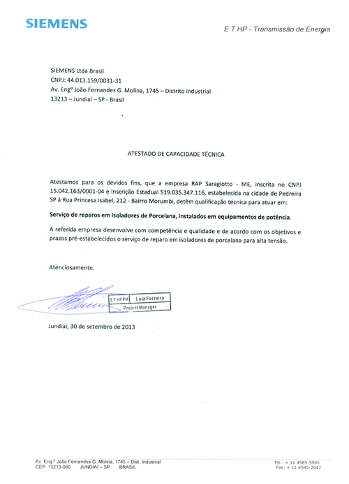 Elaboração de Laudos Técnicos em Isoladores de porcelana;